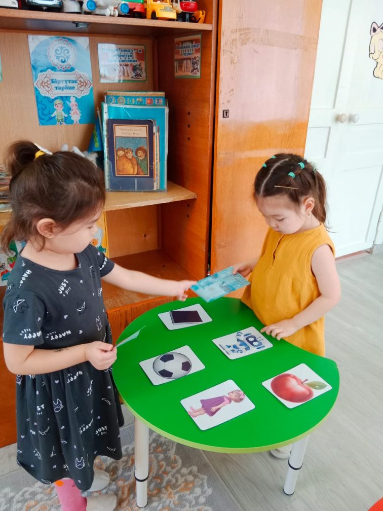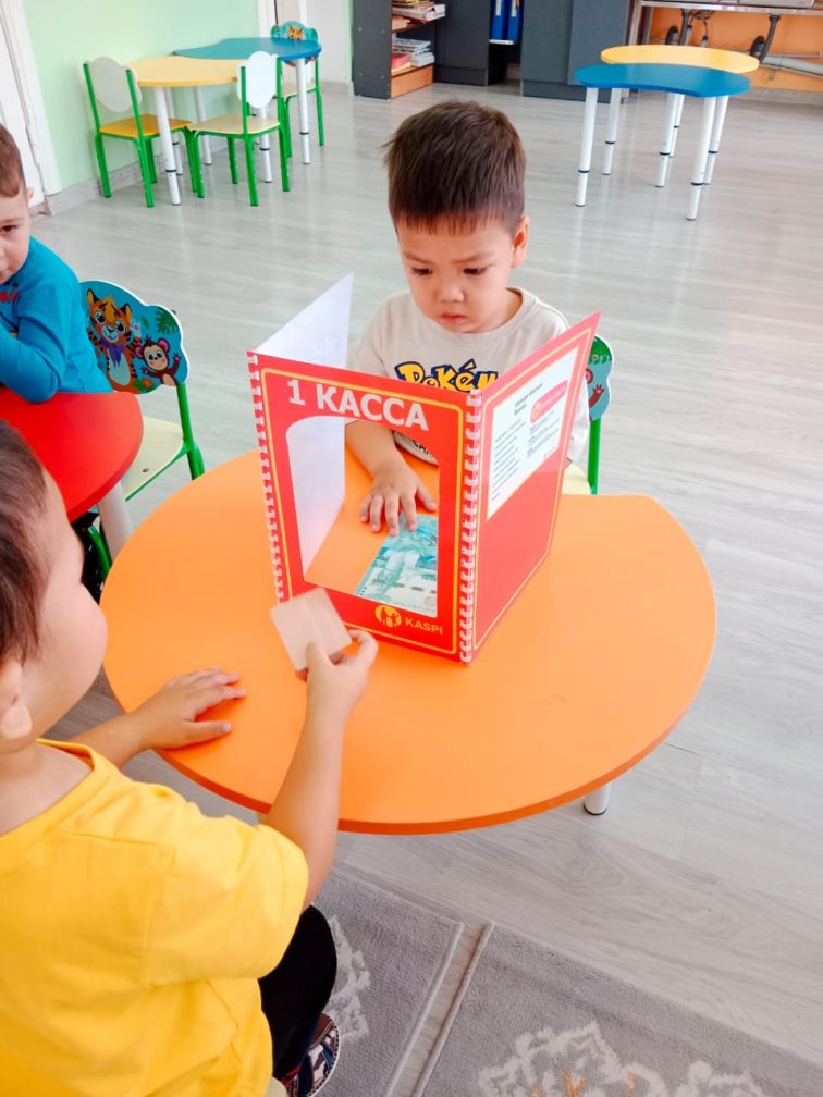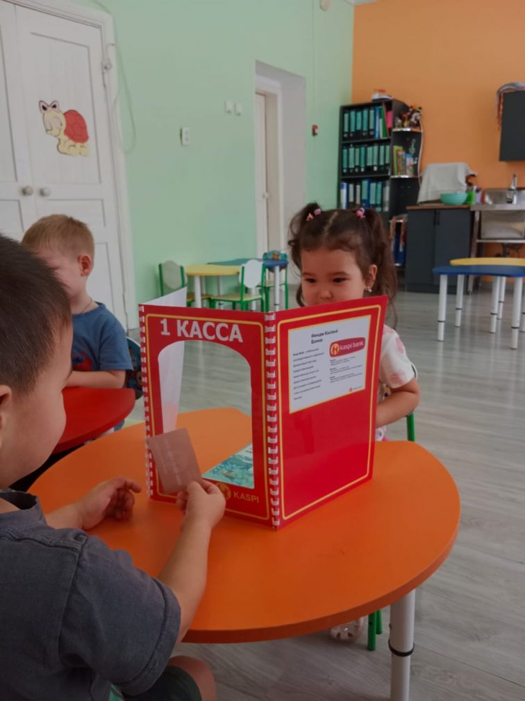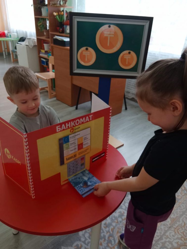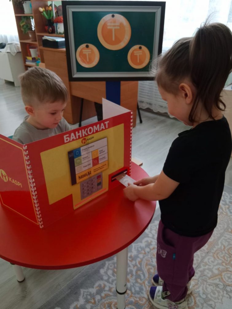 Мақсаты: Балалардың ақша, банктер, сыпайы қарым-қатынас және ересектердің заттары мен жұмысына құрметпен қарау туралы алғашқы түсініктерін дамыту.