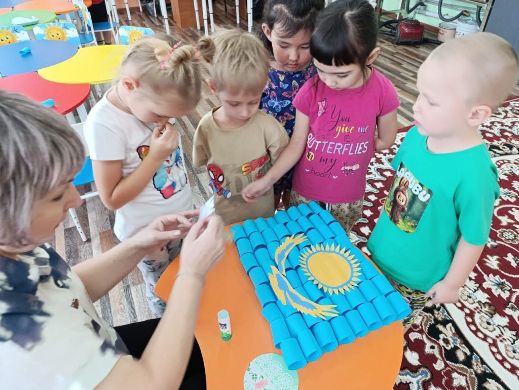Қазақстан Республикасының Тәуелсіздік күні қарсаңында «Осьминожки» мектепалды даярлық тобы «Елім мақтан тұтамын» атты викторина өткізді. Соңында балалар қағаздан жалау жасады.